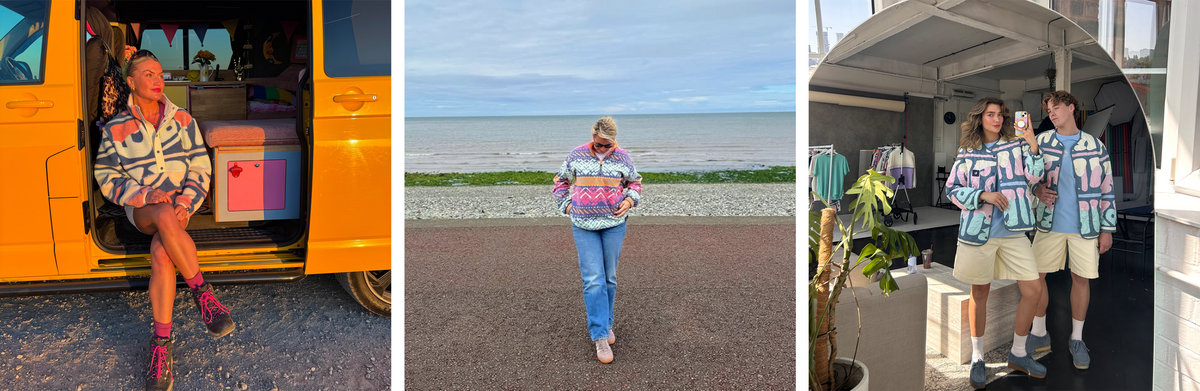 Polar Retro Pattern Popper Neck Fleece Aztec & Navy