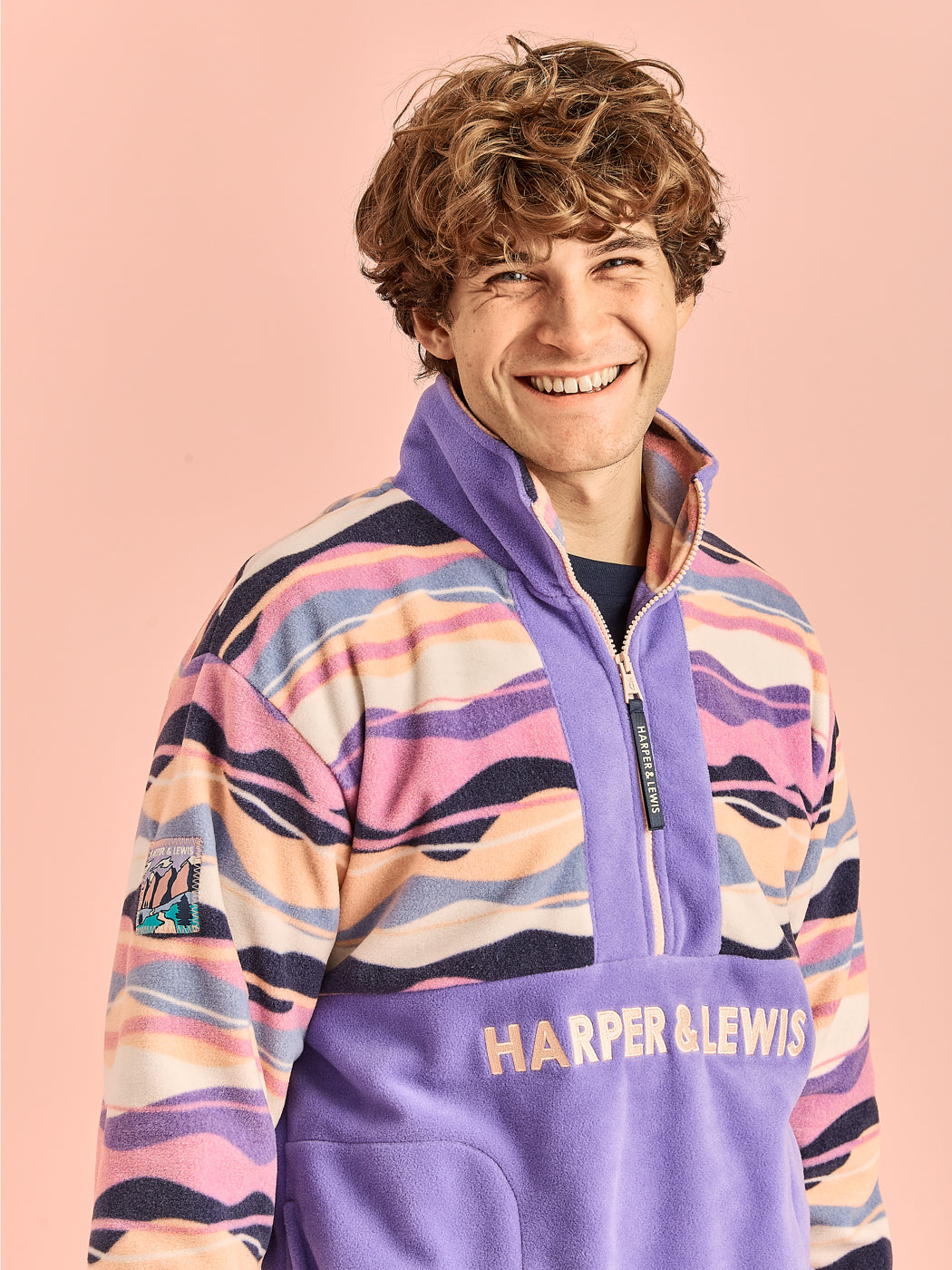 Crafted for both comfort and visual appeal. It’s accented with an embroidered Harper & Lewis logo in Light Peach, a branded zip puller, and a woven badge on the sleeve, and tab at back neck and cuff. Light Peach binding at the cuffs and hem, alongside two side pockets with fleece lining, ensures added warmth and functionality.