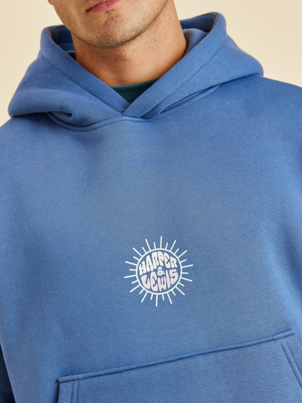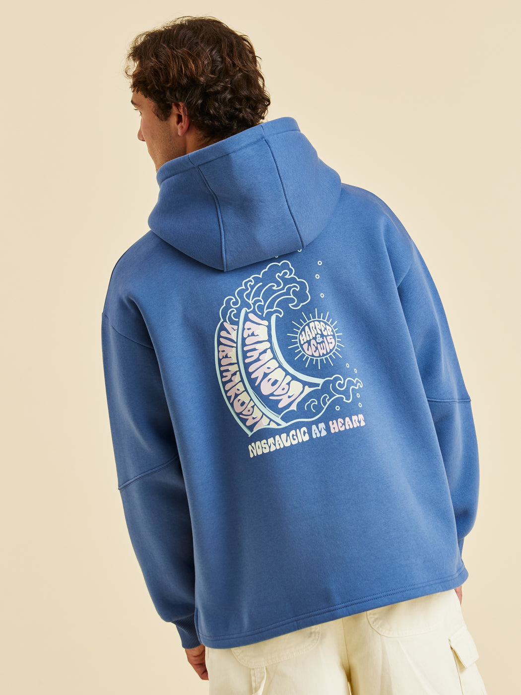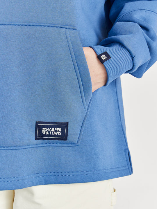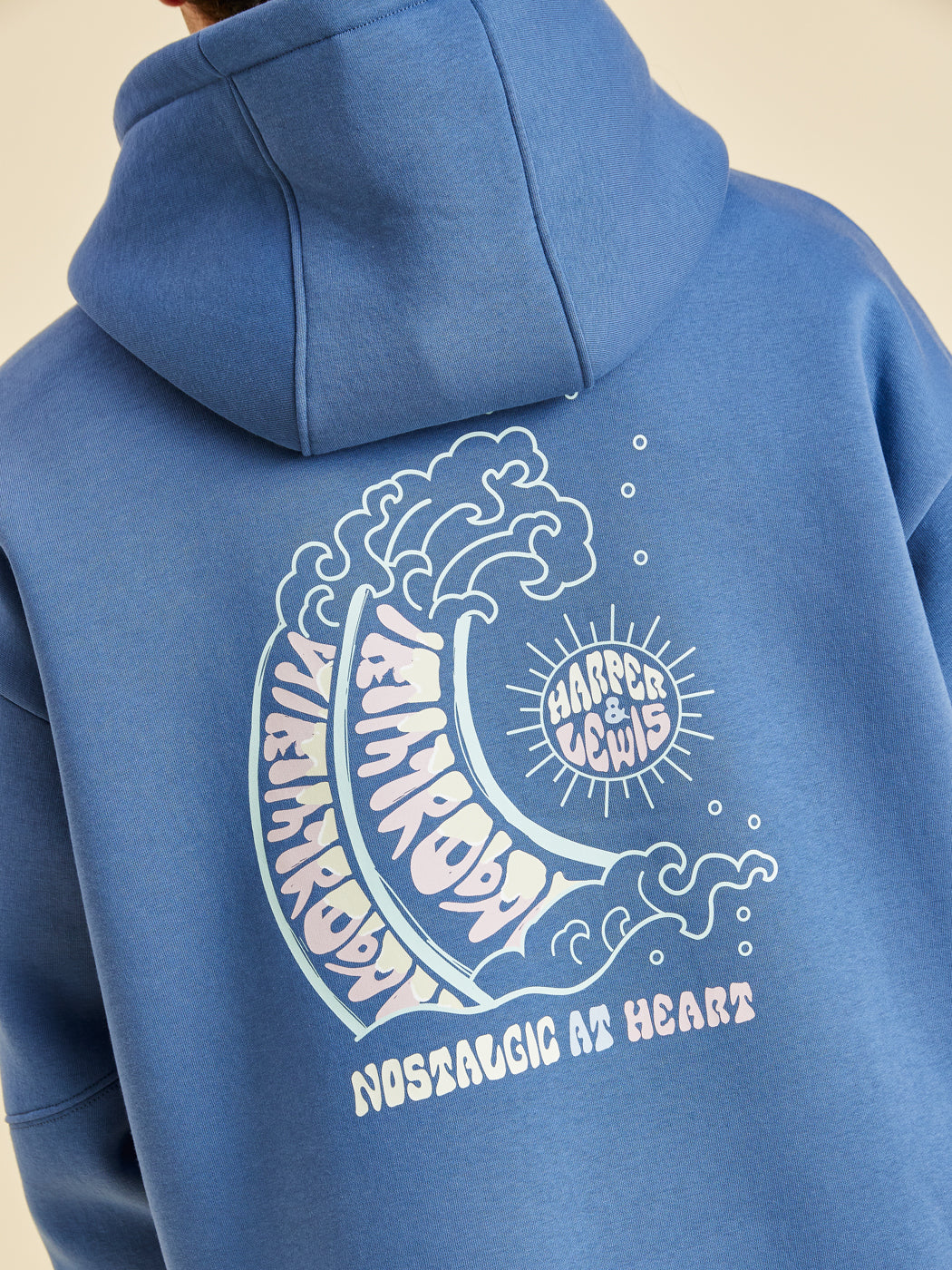 Discover the ultimate choice for both style and comfort with the Cruz Hoodie. This Airforce Blue hooded sweatshirt is adorned with a striking Wave Graphic on the back and a Harper & Lewis emblem on the front, celebrating our vintage heritage. Made from soft fleece-back jersey, it ensures a cosy interior perfect for keeping warm while looking stylish.