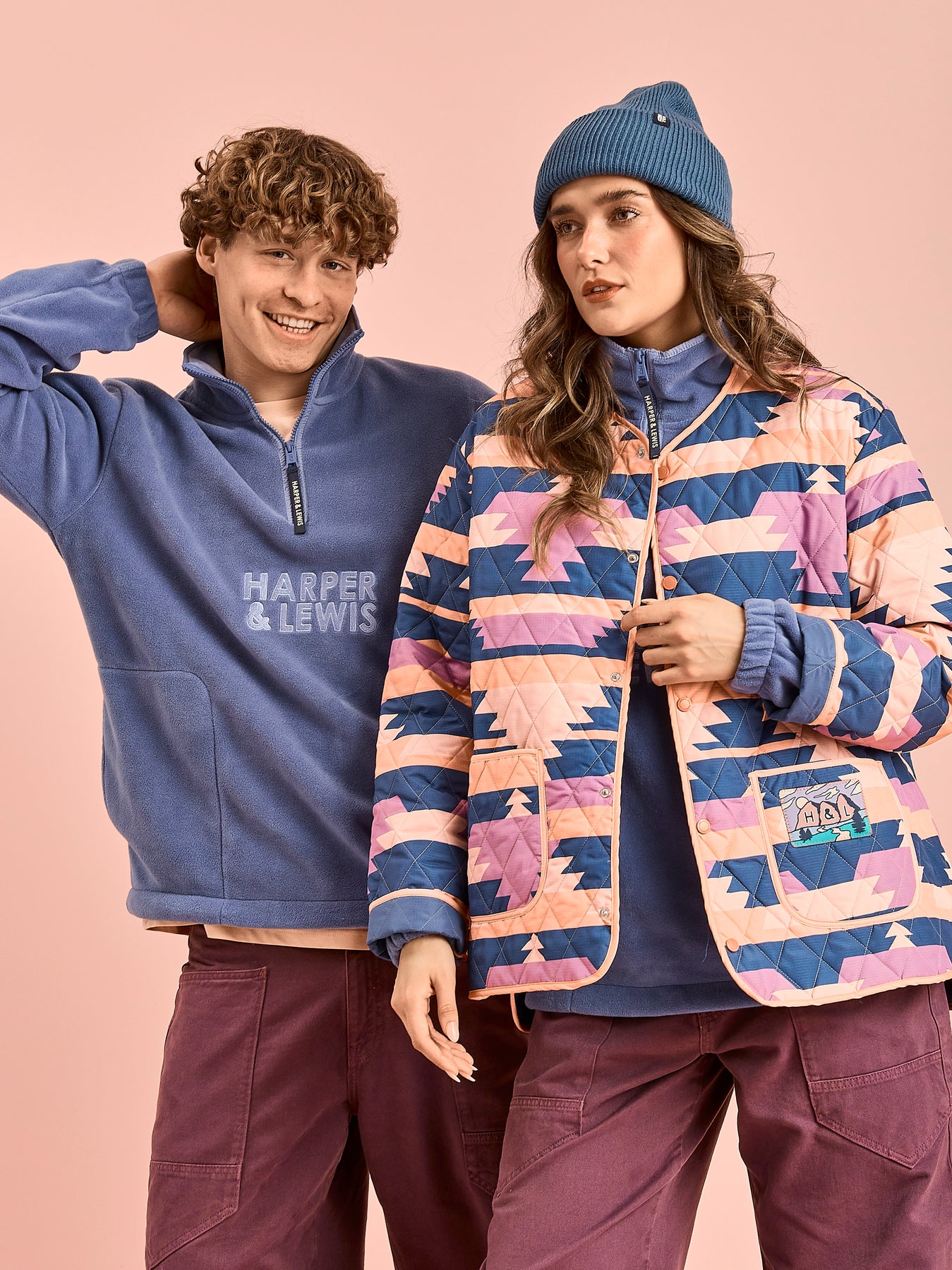 - Both Models are wearing Elsa 1/4 Zip Fleece Airforce styled with Asani Trousers Deep Mulberry