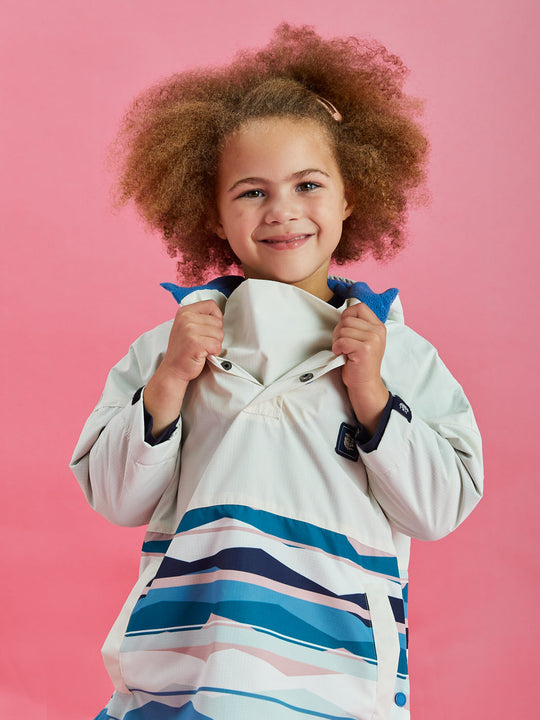 Enhance your Autumn/Winter essentials with the Kids Alva Retro Pattern Fleece lined Poncho. Perfect for unpredictable weather, this stylish rain poncho features an oversized fit, ideal as a festival poncho. It boasts a cream top half and a vibrant retro patterned lower half, made from durable 100% polyester ripstop with a fleece lining to keep you dry and warm. The design includes a popper neck and side button closure for easy on and off, with a drawstring hood for adjustable coverage.