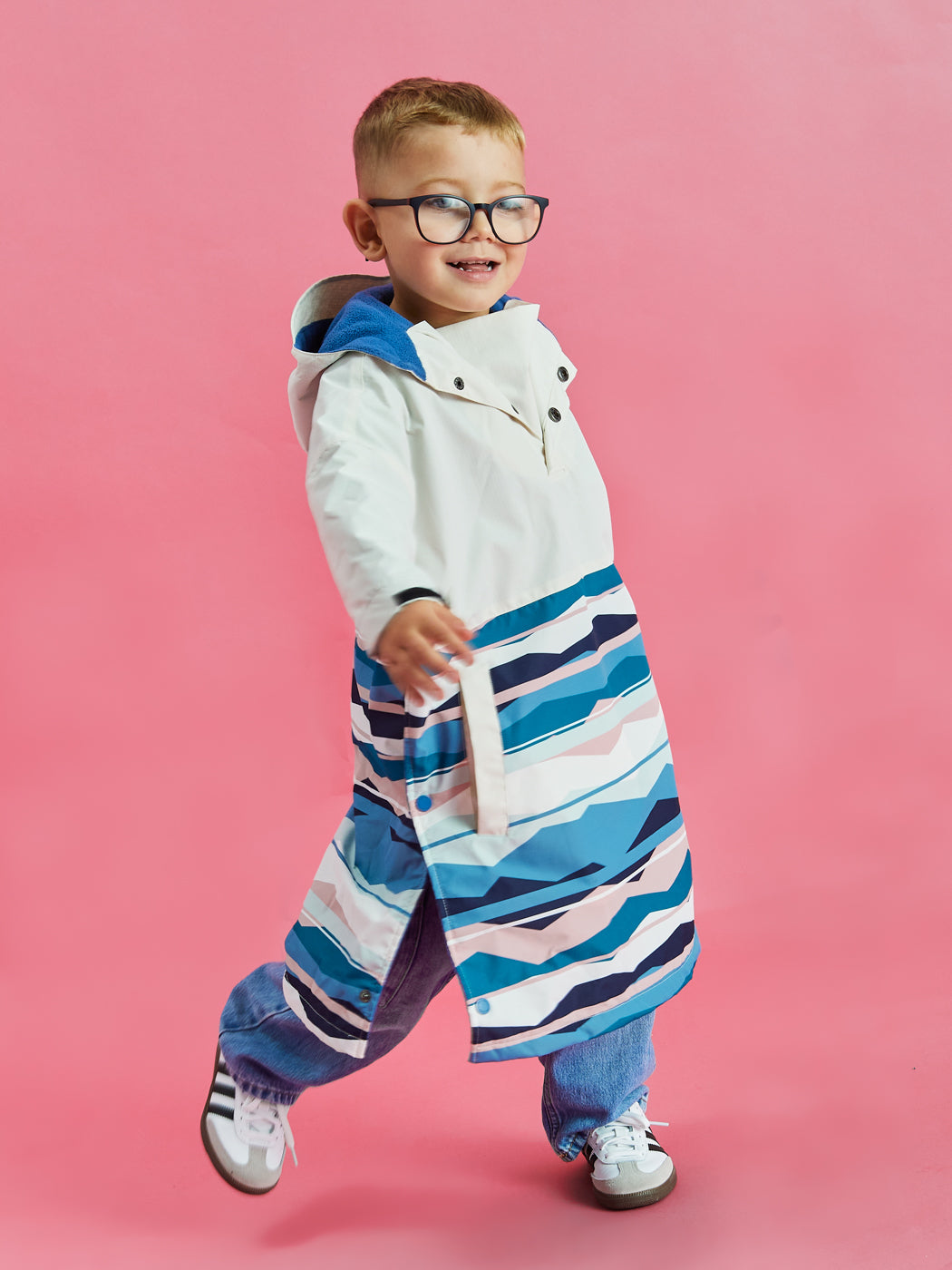 The Kids Alva Retro Pattern Poncho is your go-to choice for festival season or any rainy day adventure, offering both style and practicality.