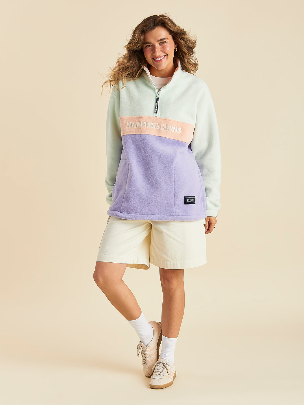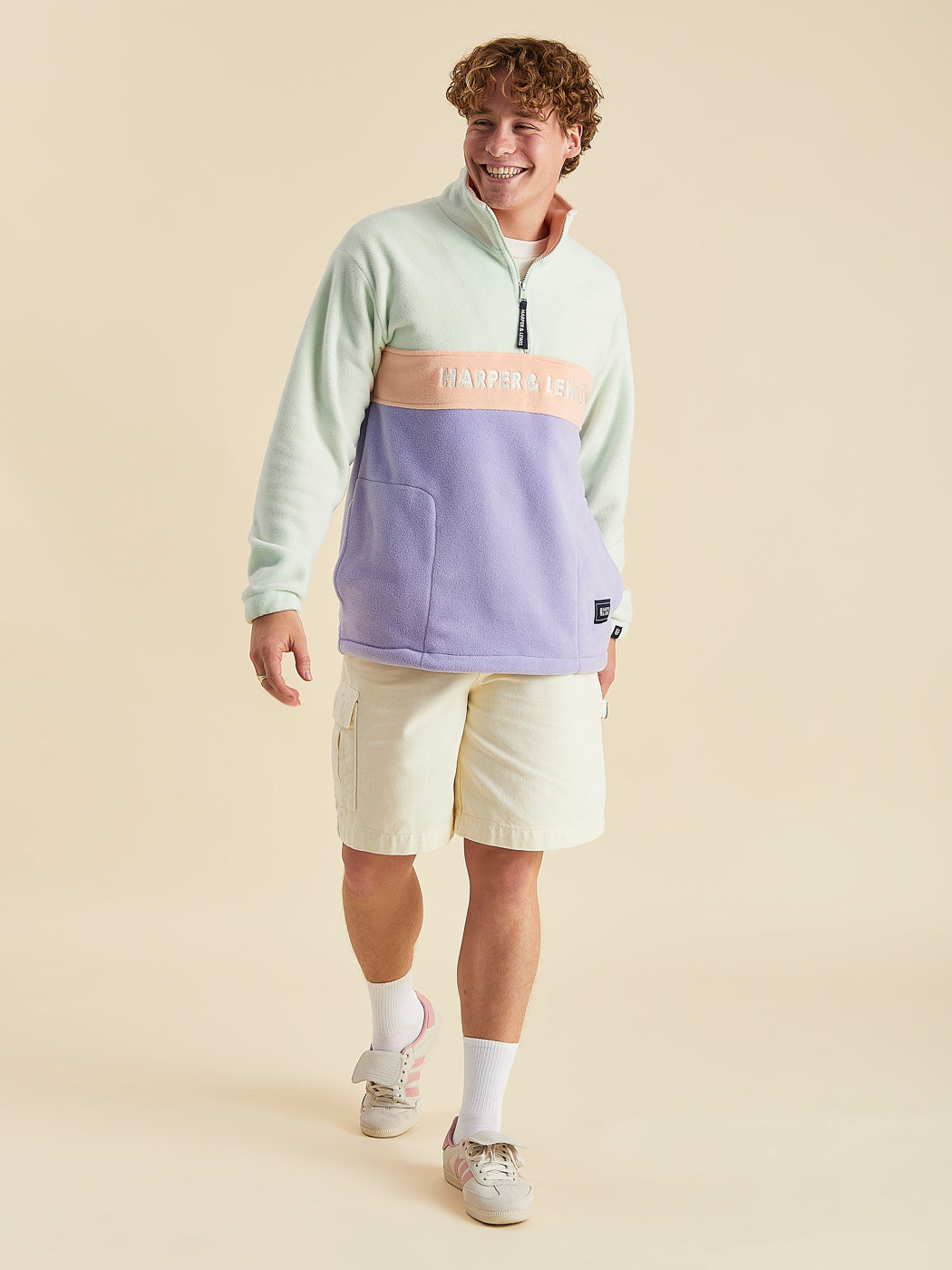- Both Models are wearing Mellow 1/4 Zip Fleece styled with Maia Tee in Cream & Ottis Shorts in Cream