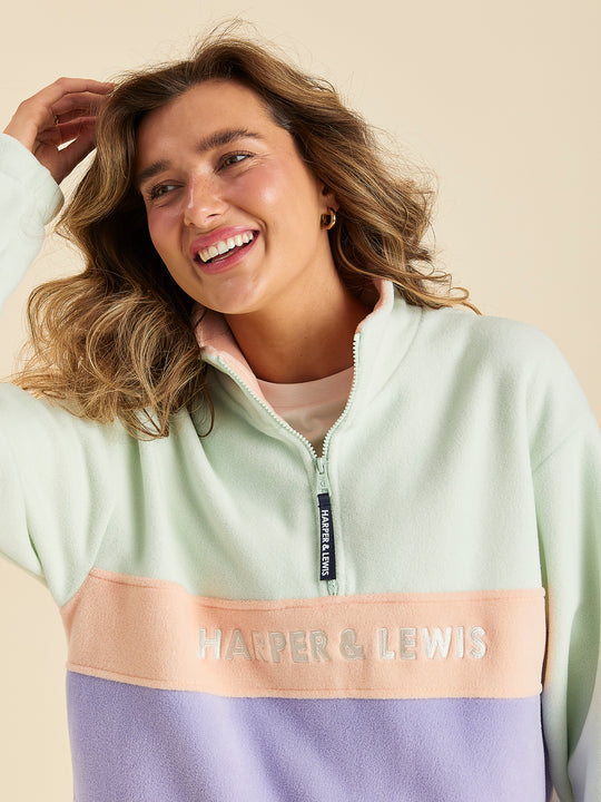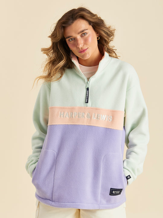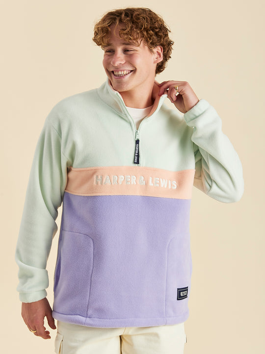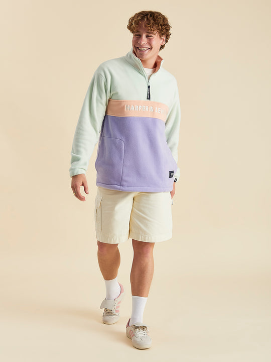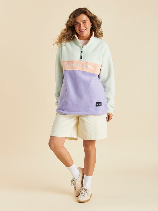 Mellow 1/4 Zip Fleece Light Sage & Light Lilac