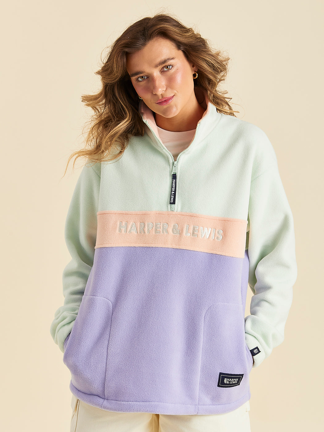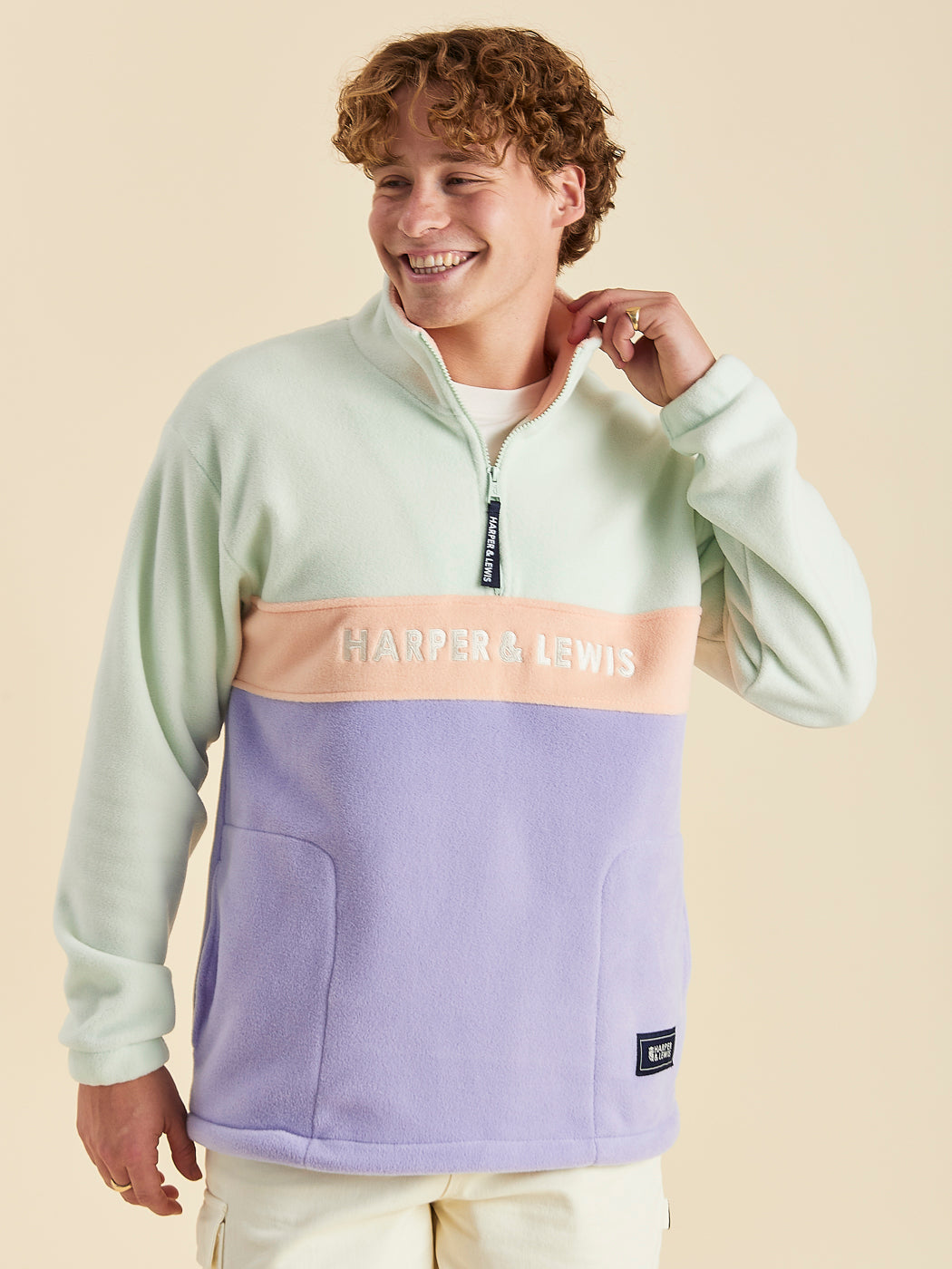 Crafted from 100% polyester polar fleece, this 1/4 zip fleece ensures you stay super warm and comfortable. The embroidered Harper & Lewis logo in cream and the navy and white woven zip pull add distinctive branding touches. Practical features include a branded woven badge at the hem, reverse, and cuff, elasticated cuffs, an adjustable shockcord hem, and two side pockets with fleece lining for added warmth and storage.